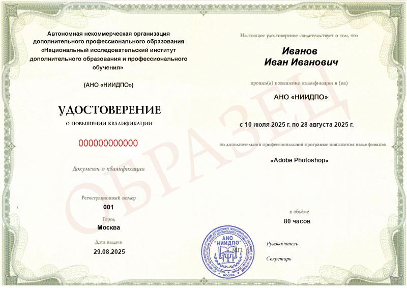 Учебный план программы повышения квалификации «Adobe Photoshop»