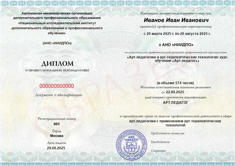 Да, документы оформляются на бланках с защитой от подделок, заполняются на русском языке, в них ставится печать АНО «НИИДПО».