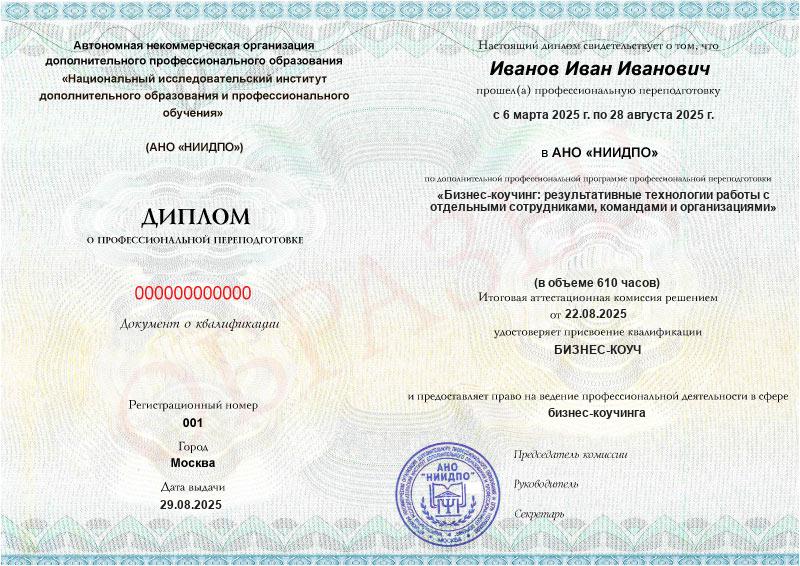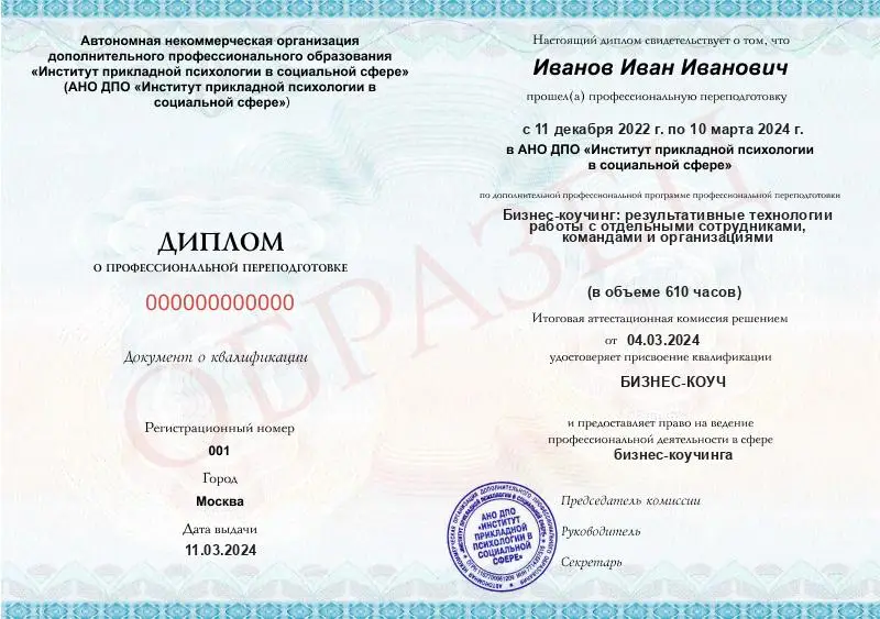 • Диплом о профессиональной переподготовке с правом на ведение профессиональной деятельности