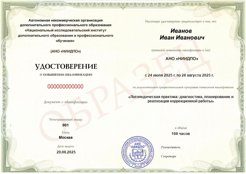 Да, документы оформляются на бланках с защитой от подделок, заполняются на русском языке, в них ставится печать АНО «НИИДПО».