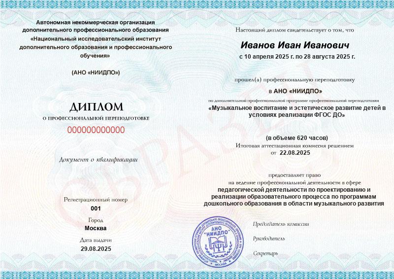 Студент, желающий поступить в АНО «НИИДПО», должен предоставить справку из образовательной организации. Независимо от срока окончания обучения по программе дополнительного образования, диплом о профпереподготовке выдаётся только после предъявления документа о получении среднего профессионального или высшего образования.