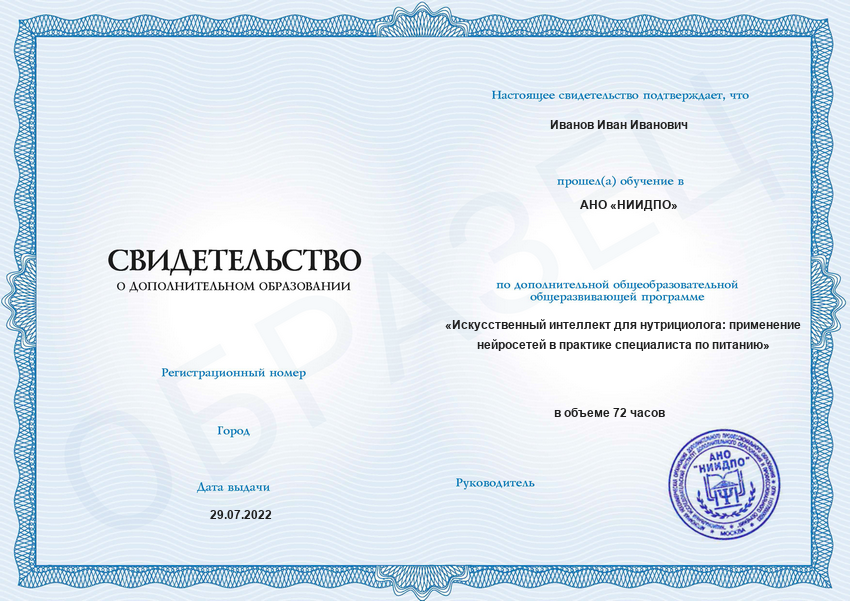 Обзор программы повышения квалификации «Искусственный интеллект для нутрициолога: применение нейросетей в практике специалиста по питанию»
