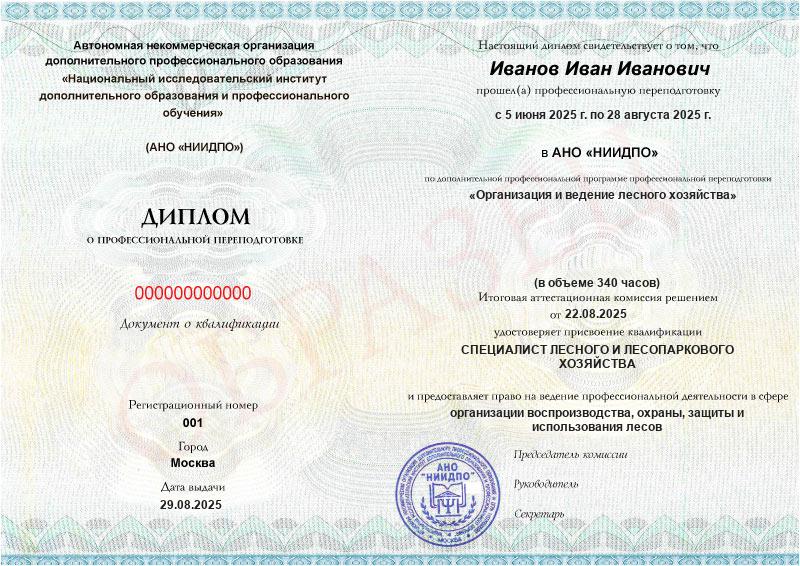 Освойте профессию специалиста по лесному хозяйству на партнерской программе АНО «НИИДПО» и ФГБОУ ВО «НовГУ»: