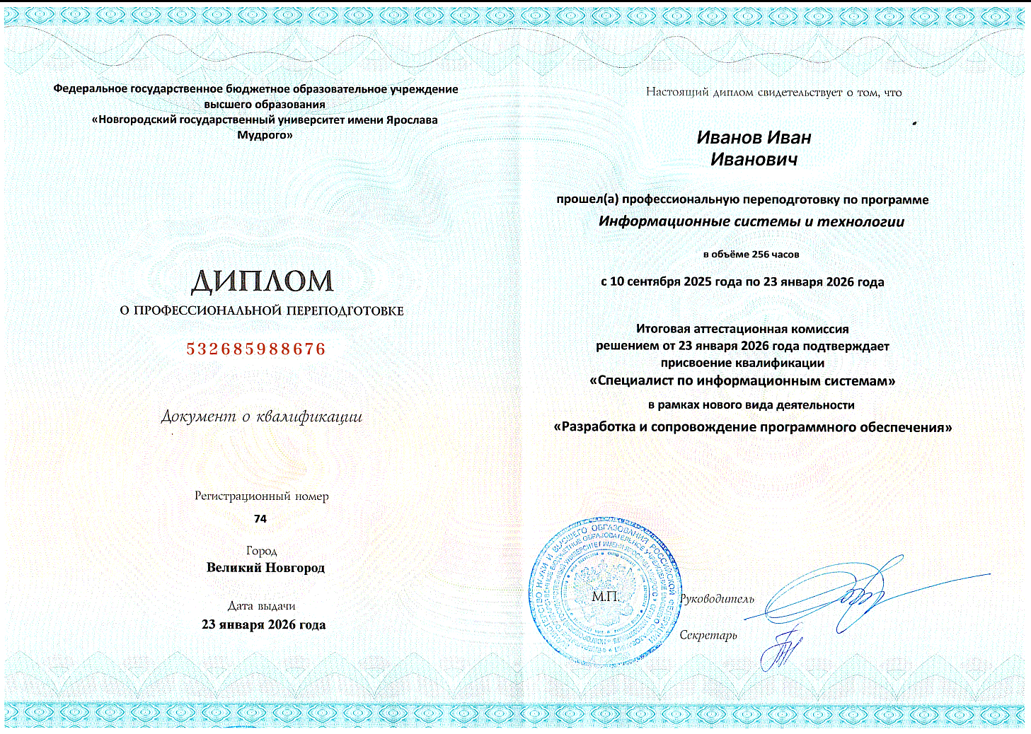 Согласно закону, дипломы о профпереподготовке могут быть оформлены в порядке, установленном образовательным учреждением (пункт 19 Порядка организации и осуществления образовательной деятельности по ДПП). Образцы квалификационных документов размещены на сайте нашей образовательной организации.