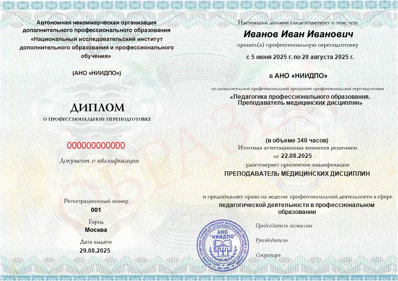 Обзор программы профессиональной переподготовки «Педагогика профессионального образования. Преподаватель медицинских дисциплин» с присвоением квалификации «Преподаватель медицинских дисциплин»