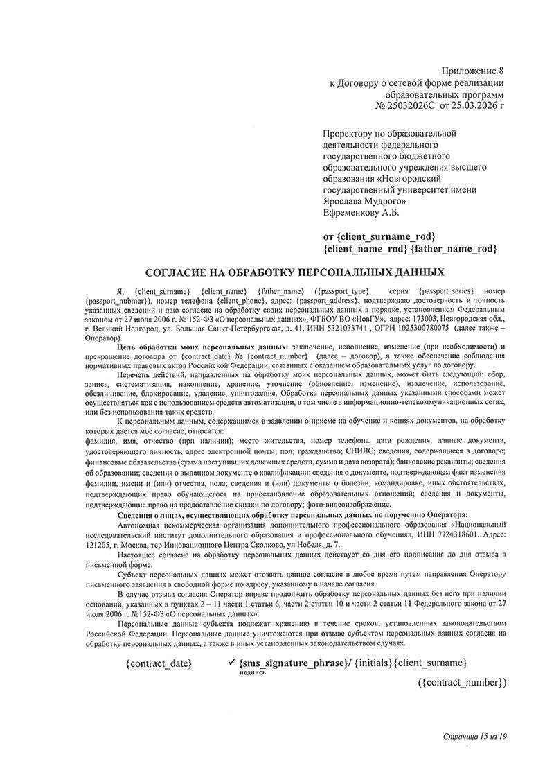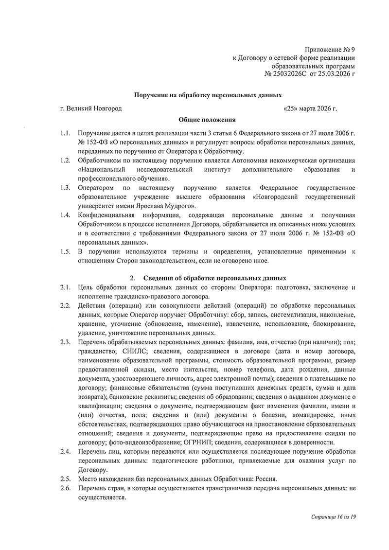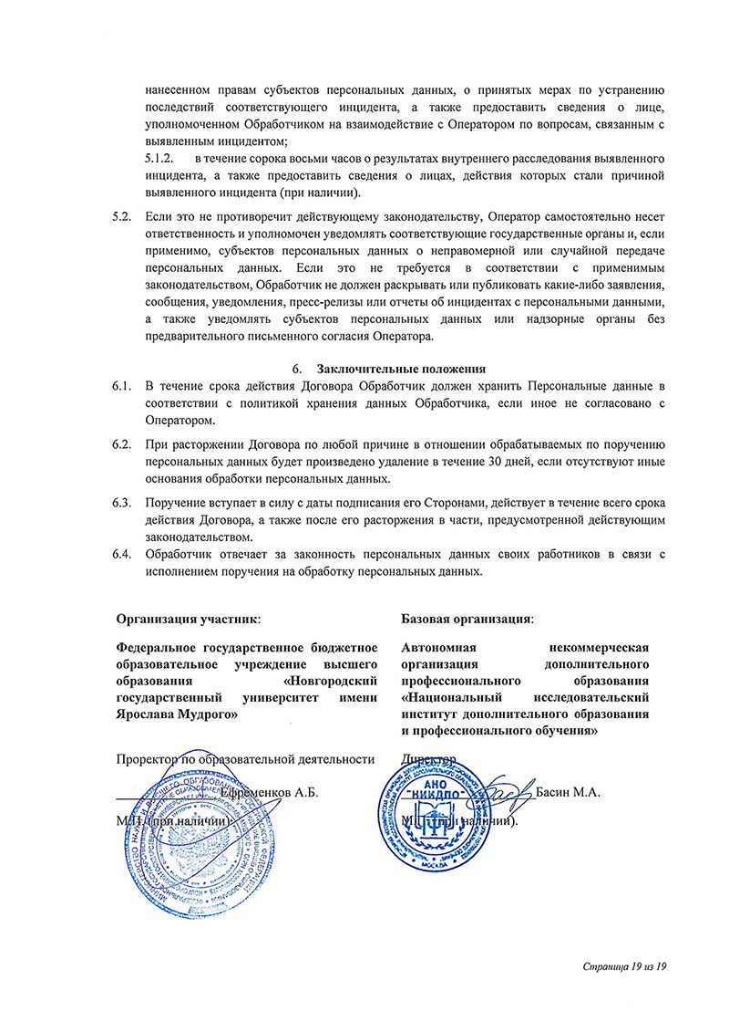 Договор между НовГУ и АНО «НИИДПО»
