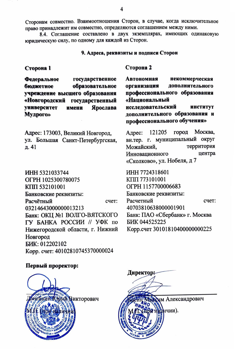 Соглашение между НовГУ и АНО «НИИДПО»