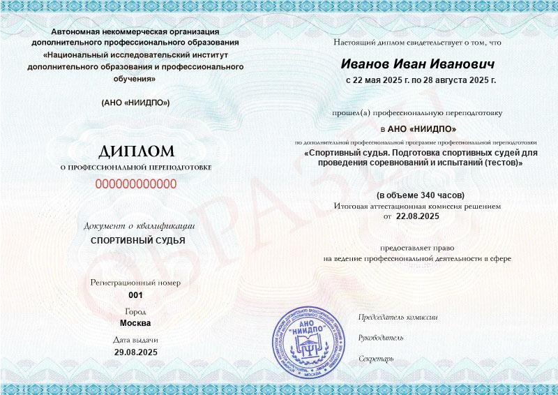 Спортивный судья. Подготовка спортивных судей для проведения соревнований и испытаний (тестов) (340ч)