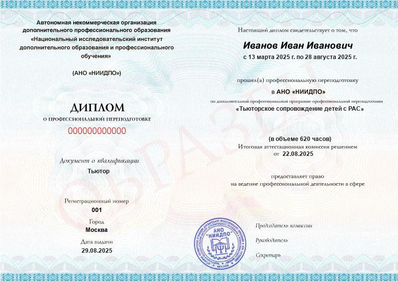 Студент, желающий поступить в АНО «НИИДПО», должен предоставить справку из образовательной организации. Независимо от срока окончания обучения по программе дополнительного образования, диплом о профпереподготовке выдаётся только после предъявления документа о получении среднего профессионального или высшего образования.