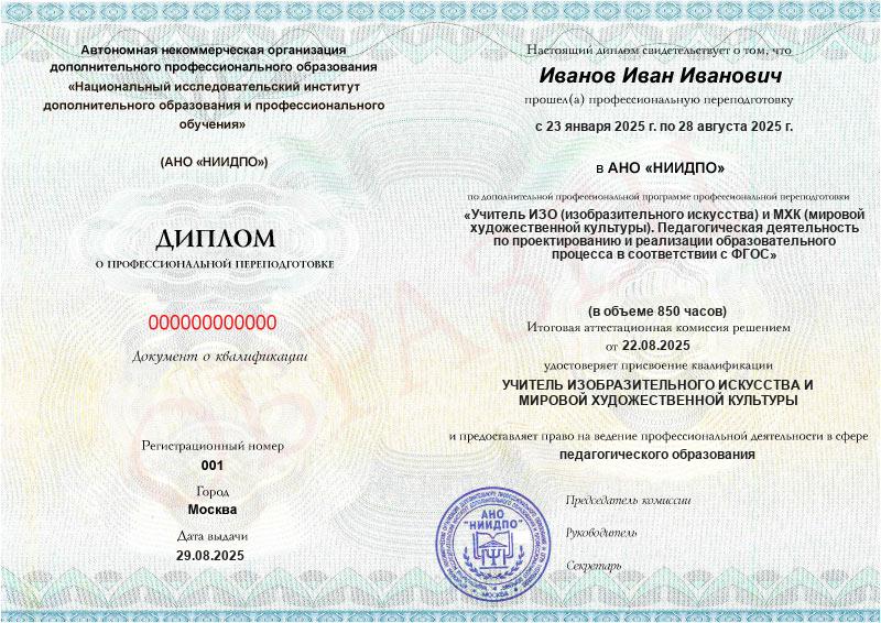 Студент, желающий поступить в АНО «НИИДПО», должен предоставить справку из образовательной организации. Независимо от срока окончания обучения по программе дополнительного образования, диплом о профпереподготовке выдаётся только после предъявления документа о получении среднего профессионального или высшего образования.
